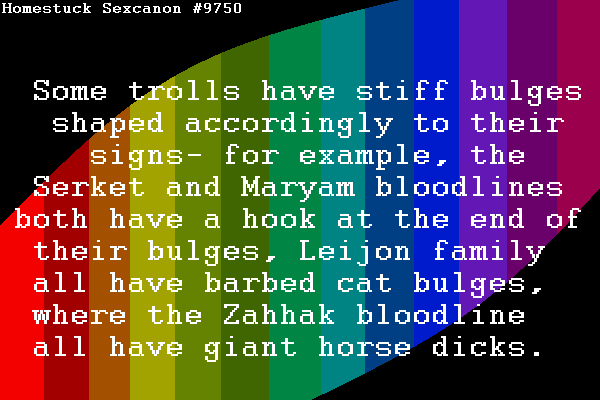 but off record i personally think consistency a bulge would feel like pretty close to that of an octopus or the underside of a snail, but if you’ve ever seen one of those octopi that can shift how they look to be rough or smooth i think bulges work kinda like that. not saying they shift cause thats a lil much for me personally but different trolls can have different textures like having ridges an such.