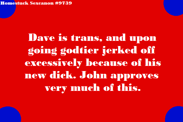 now sense ive been here there have only been three trans sexcanons put up and one of them actually just says trans people are good so that ones clearly not fetishizing because its true trans people are wonderful. now the other two could come off as fetish if thats what your looking for them to come off as, i however didnt personally think that they did. the dave one has it being stated that dave is trans an now has the body hes always wanted an loves himself now in a sexual way, and as i stated in the tags it made me a bit uncomfortable because of the john part, but the anon that submitted clarified in a second ask that there was no intent other then making dave relatable and that they like johndave. the eridan one merely states that eri is trans an her an fef have sex using her nook as i would assume a trans girl would want to.