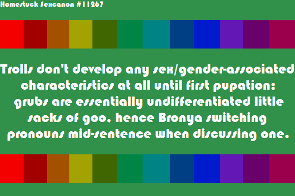 In Alternian culture, rape is seen with mild contempt as a sign the rapist can’t find a bucket partner at best, and praised as asserting authority at worst, as long as the victim’s of a lower blood caste. If the victim’s of a higher caste, the rapist will be executed for overstepping their boundaries, and the victim will also be executed for “letting” them do so.